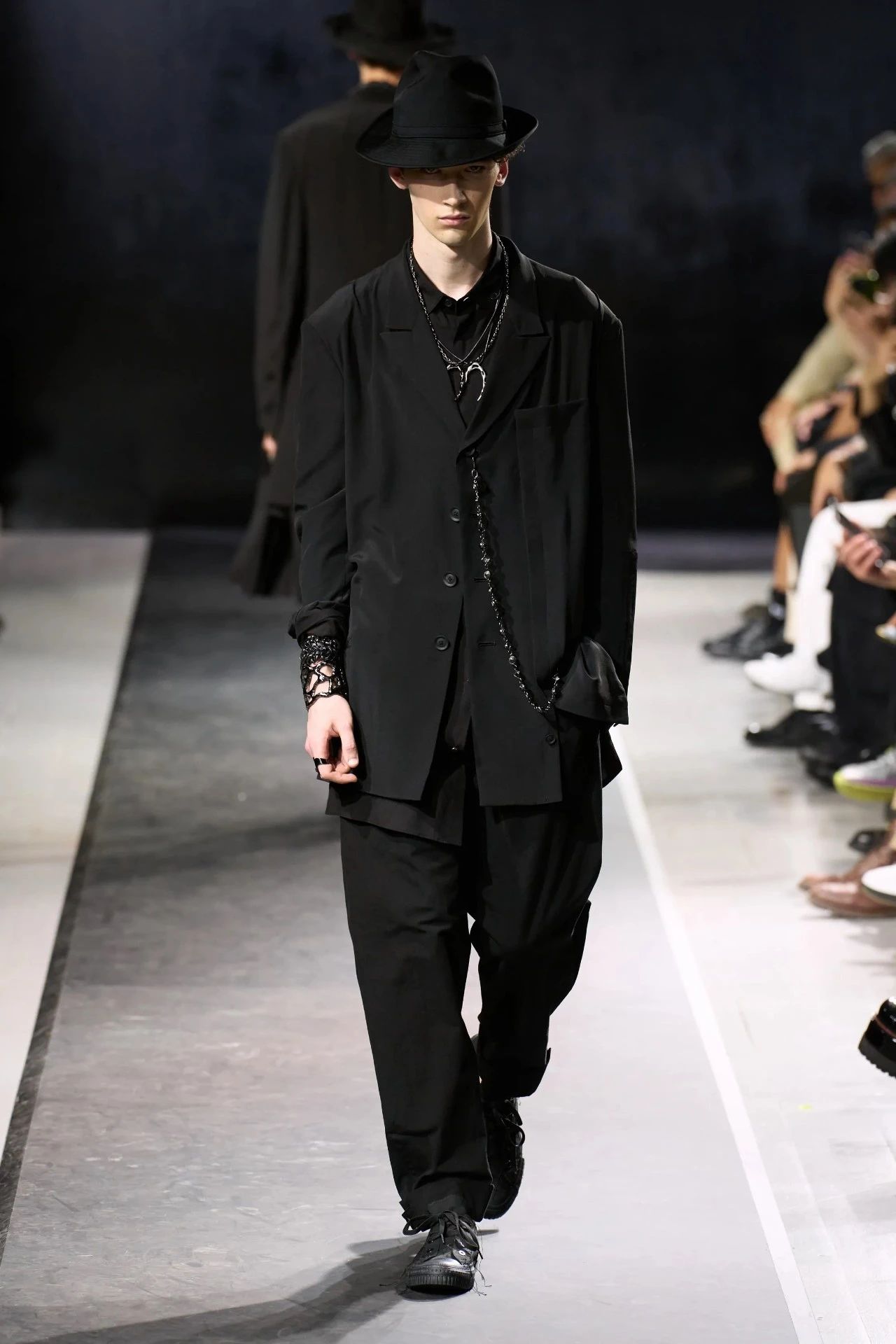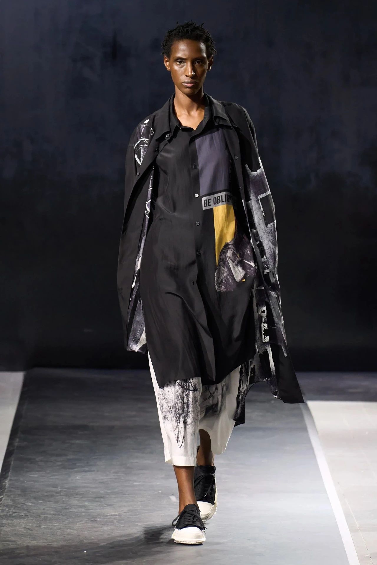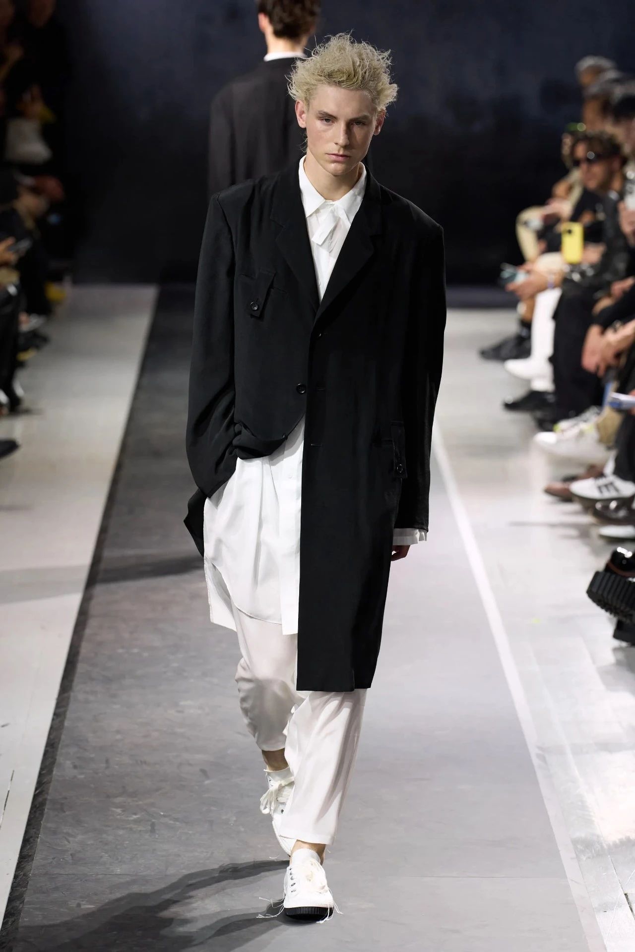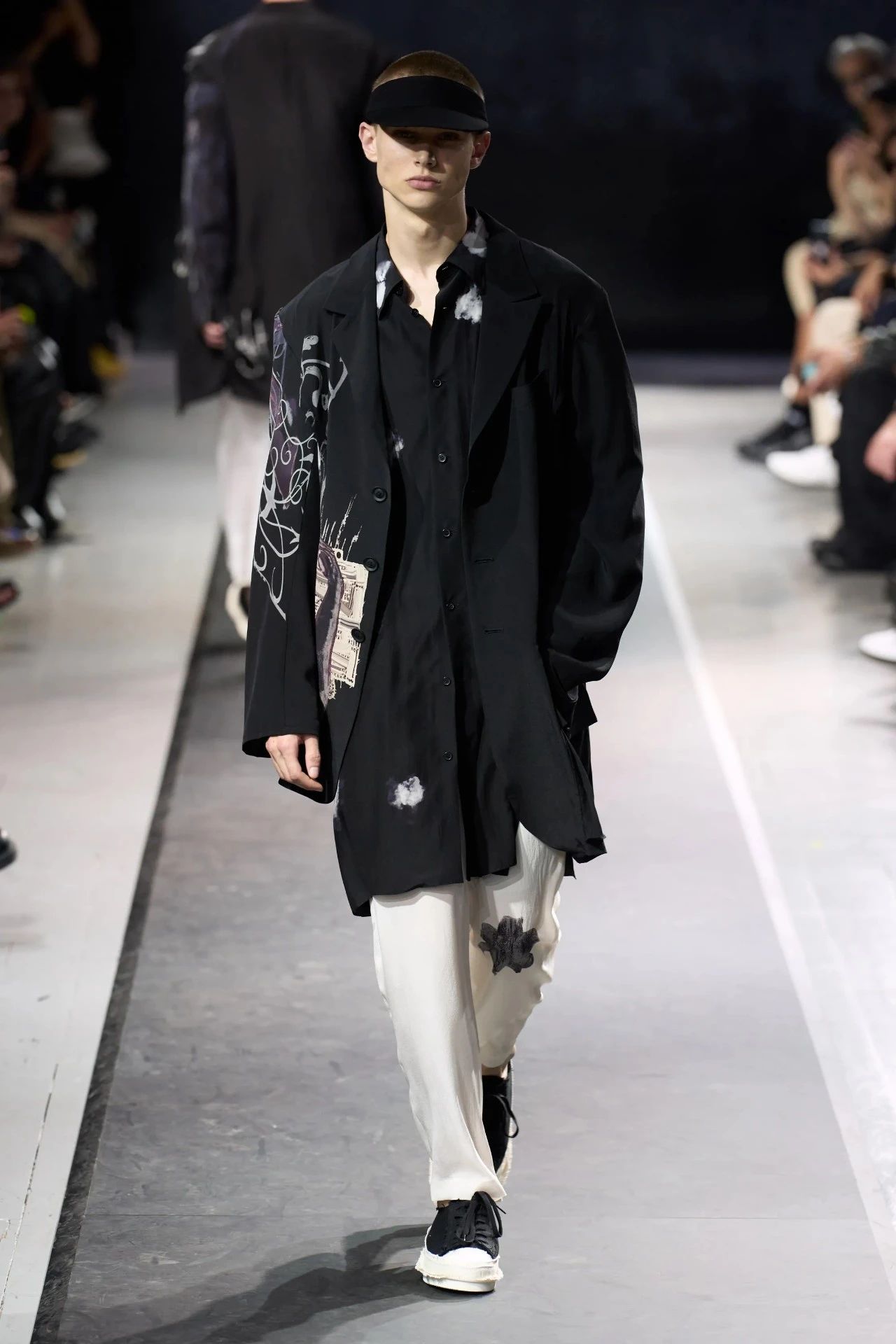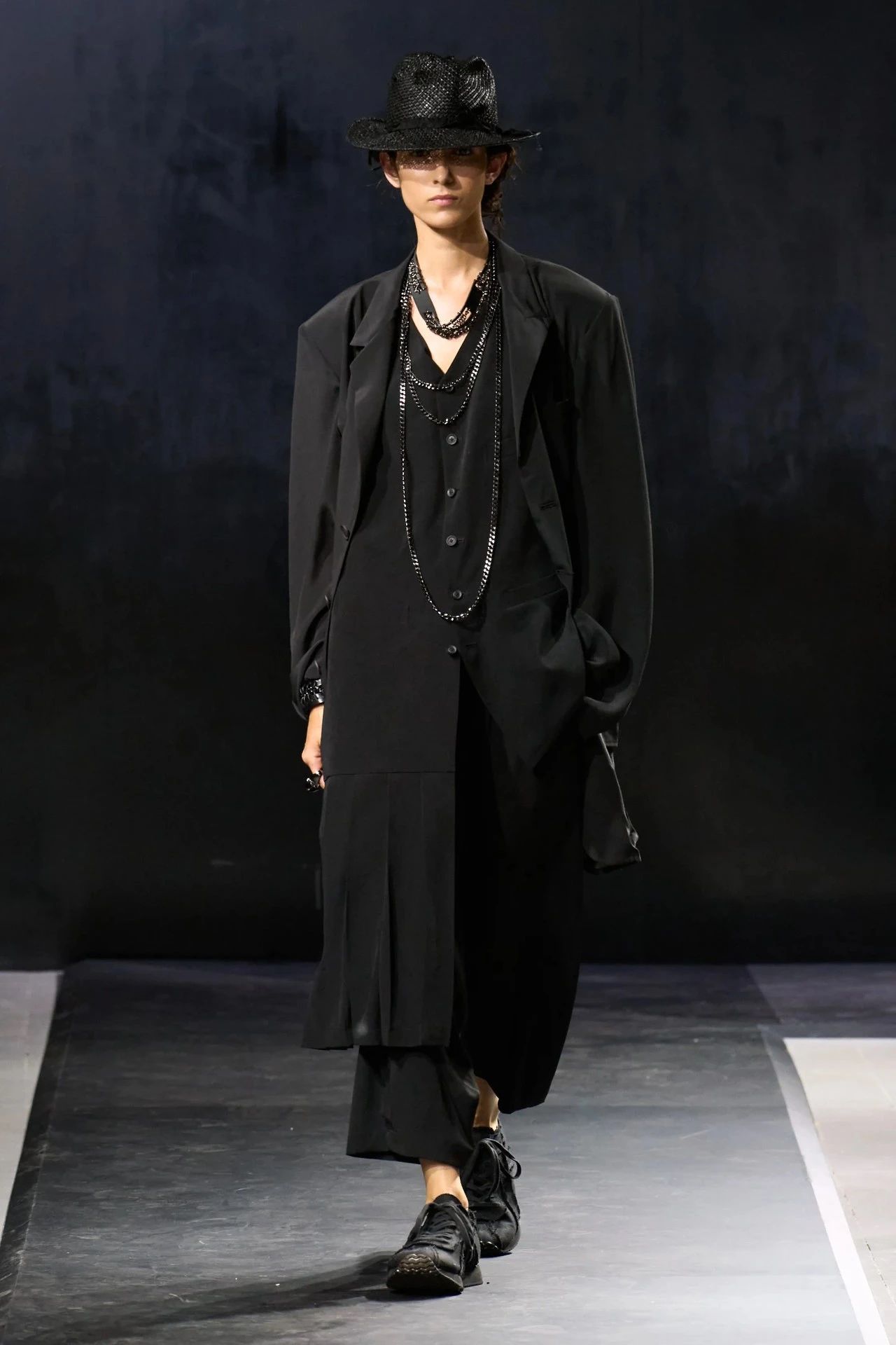 Yohji Yamamoto的2025春夏男装系列,像是一封充满诗意与哲思的书信。这一系列的设计理念不仅仅是关于服装本身,更是一场文化与哲学的深刻对话,展现了设计师对于时间流逝、人生无常以及当下社会状况的反思。