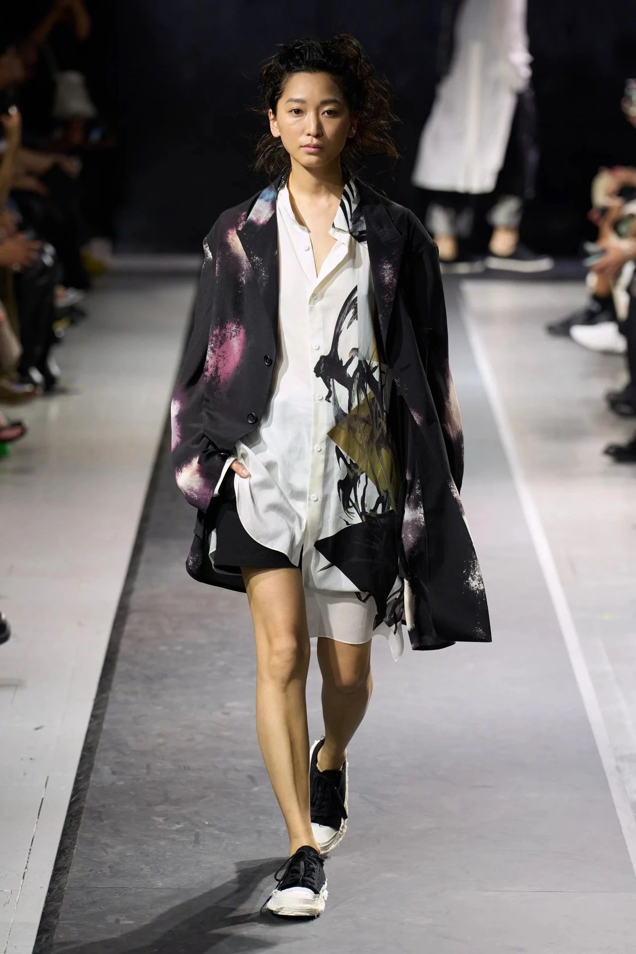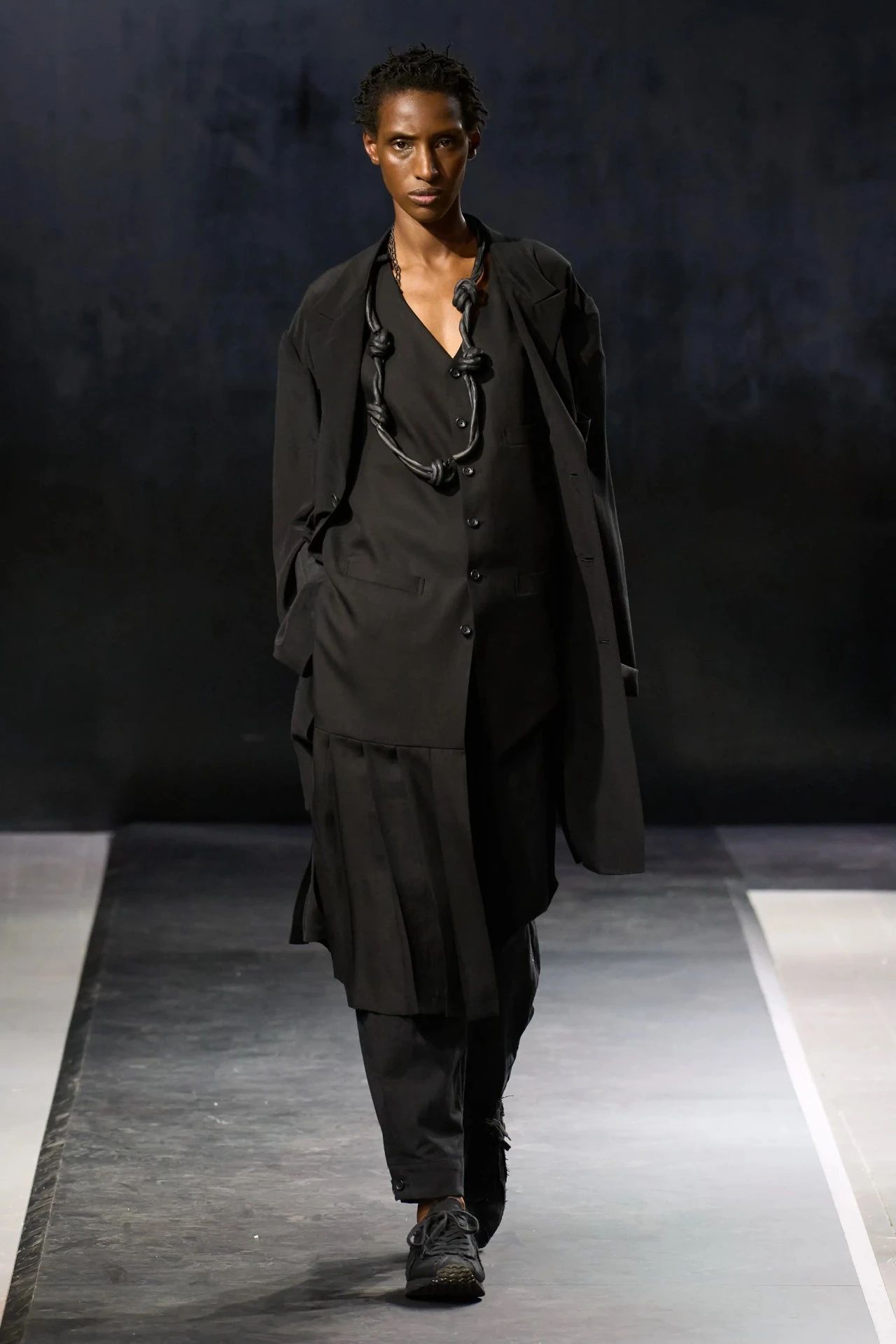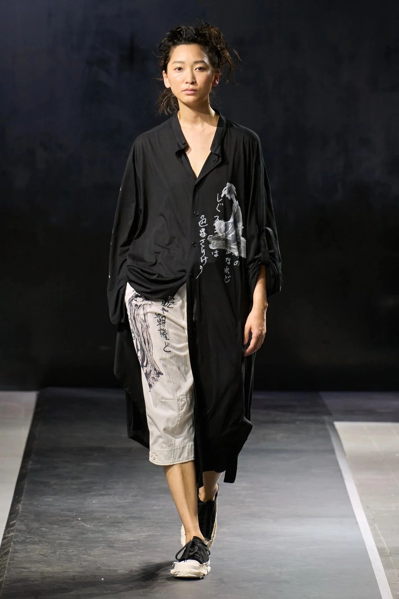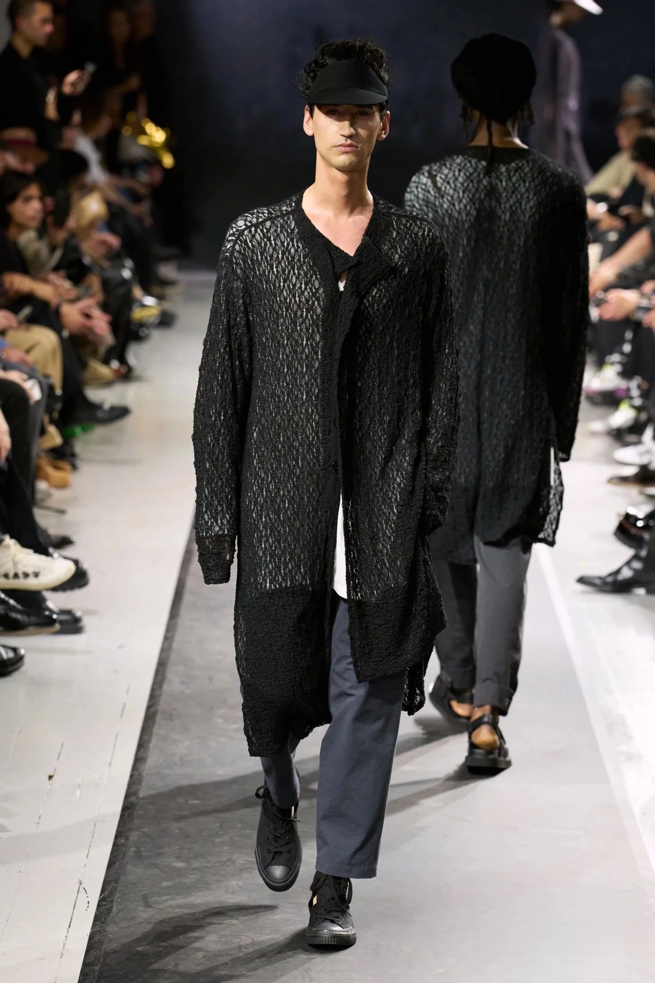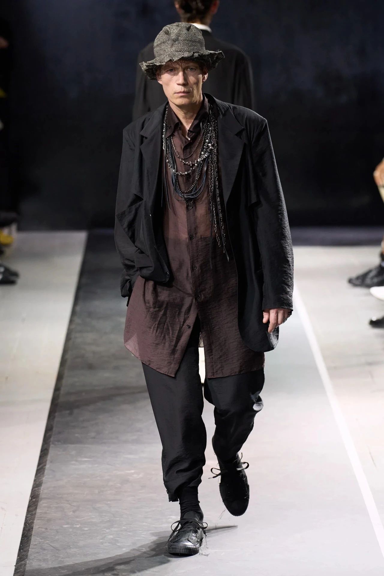 Yohji Yamamoto的2025春夏男装系列,像是一封充满诗意与哲思的书信。这一系列的设计理念不仅仅是关于服装本身,更是一场文化与哲学的深刻对话,展现了设计师对于时间流逝、人生无常以及当下社会状况的反思。